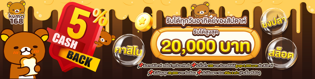 KUMA168 นำเสนอเกมเดิมพันยอดนิยมมากมายที่คัดสรรมาเพื่อสมาชิกทุกท่าน พร้อมโปรโมชั่นสุดพิเศษสำหรับสมาชิกใหม่ที่จะได้รับโบนัสต้อนรับ 100% ทันทีเมื่อสมัครสมาชิก มาดูกันว่ามีเกมอะไรบ้างที่น่าสนใจ